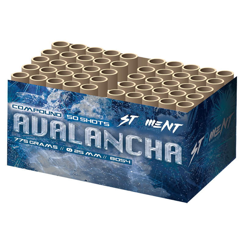 Avalancha is een 50 schots compound met een tubeafmeting van 25 millimeter. Deze compound zorgt dan ook voor een lawine aan blauwe parels, gouden effecten een een crackling afsluiter!