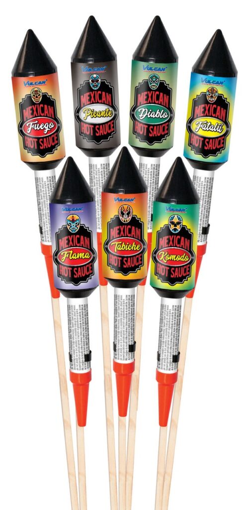 7- delig vuurpijlen assortiment met een bijzonder smaakvol en pittig design.Chili Con Bang Rocket assortment Goedkoop vuurwerk kopen bij Vuurwerkwinkel Assen