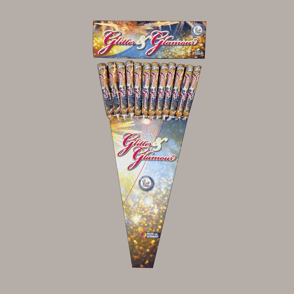 n n12 Stab-Raketen mit Blitzlichtern und kraftvollen Effekten in Rot, Grün, Blau und Lila.nDer Artikel enthält eine Tragehülse. n n