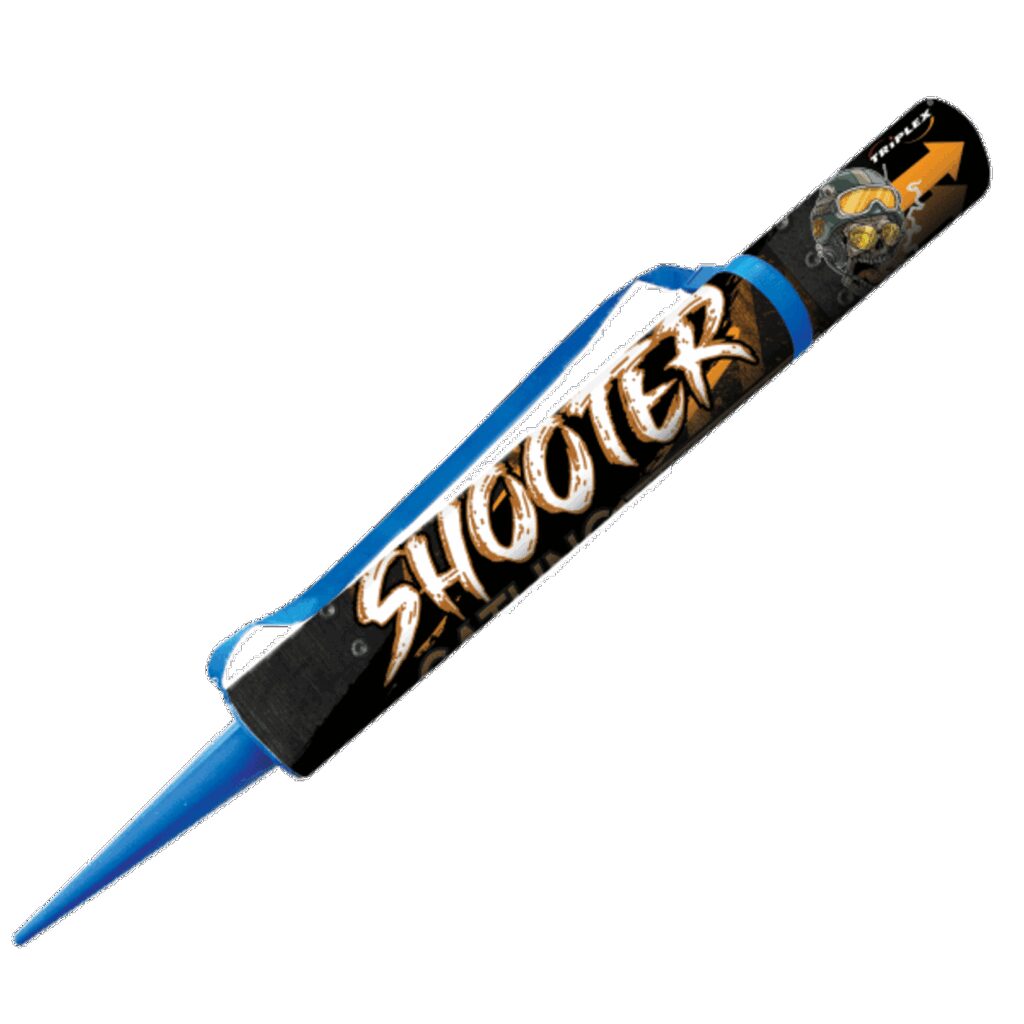 n380-Schuss-Shooter mit wechselnden Farben, rot blitzenden Sternen, die sich in Blau verwandeln, und als Höhepunkt ein spektakulärer Spezialeffekt!