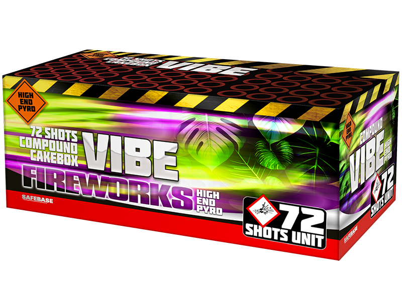 Vibe nEen super sterke compound in zijn prijsklasse! Veel verschillende kleuren en effecten. n nKruitgewicht 876 Gram nTube diameter 20 nBrandtijd 53 Seconden nHoogte 20 m. – 25 m. Vibe Goedkoop vuurwerk kopen bij Vuurwerkwinkel Assen