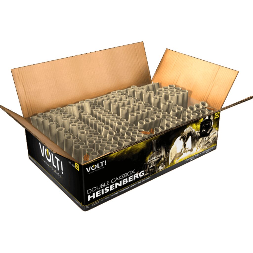 nDer Heisenberg von VOLT! ist 25 Kilo pures Feuerwerkschaos mit allen Schussrichtungen. Definitiv nichts für jedermann, denn diese Box ist ein Kraftpaket der Extraklasse!
